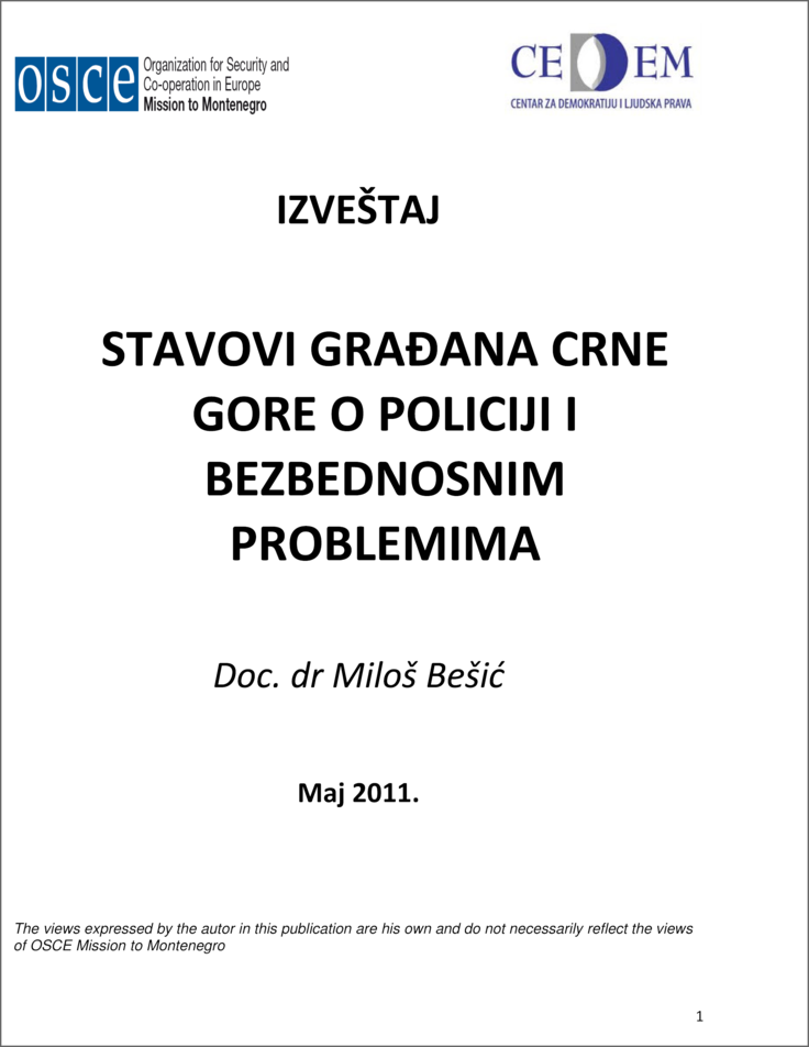 Izvještaj o stavovima građana Crne Gore o policiji i bezbjednosnim problemima