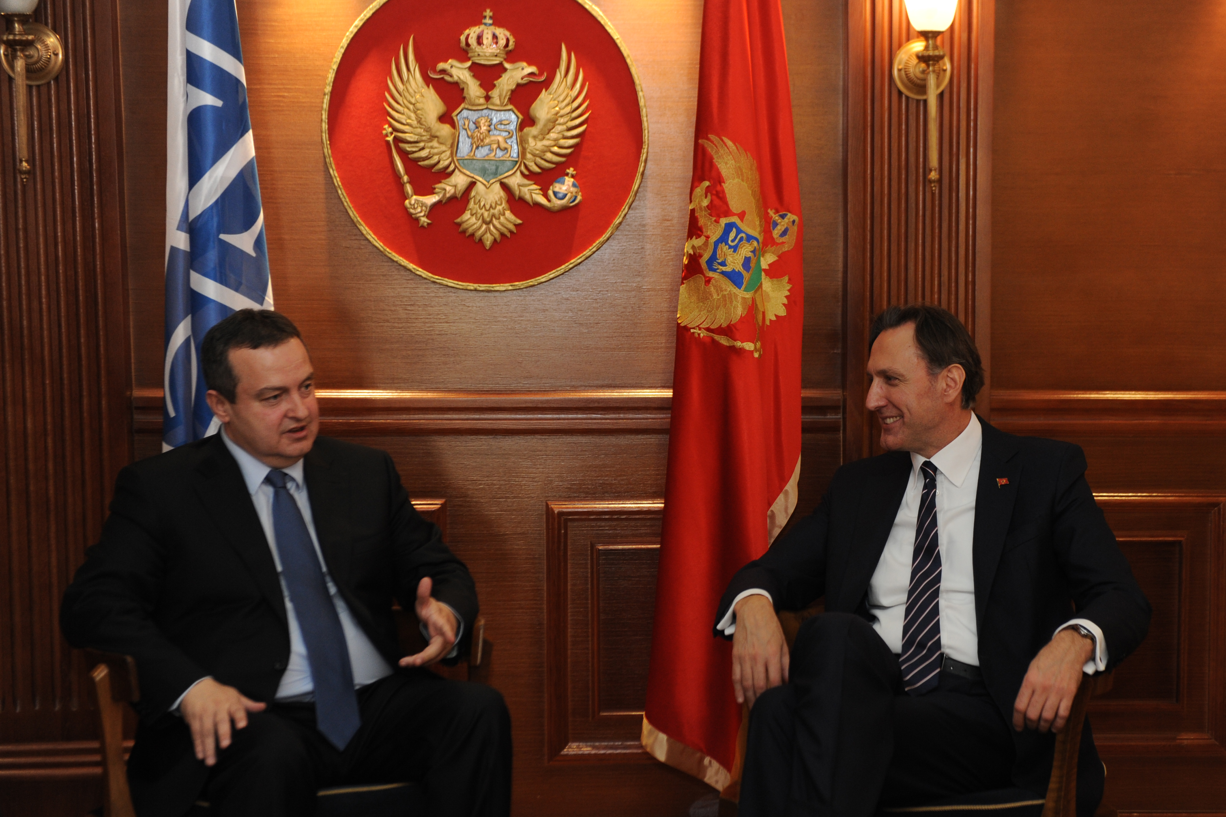 OSCE Chairperson, Serbia’s Foreign Minister Ivica Dacic (l), speaking with Montenegro's Parliament speaker Ranko Krivokapic, Podgorica, 17 February 2015.