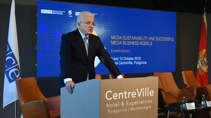 Predsjednik Vlade Crne Gore Duško Marković otvara OEBS-ovu Konferenciju "Održivost medija i uspješni modeli medijskog poslovanja" u Podgorici, Crna Gora, 09 oktobar 2018.