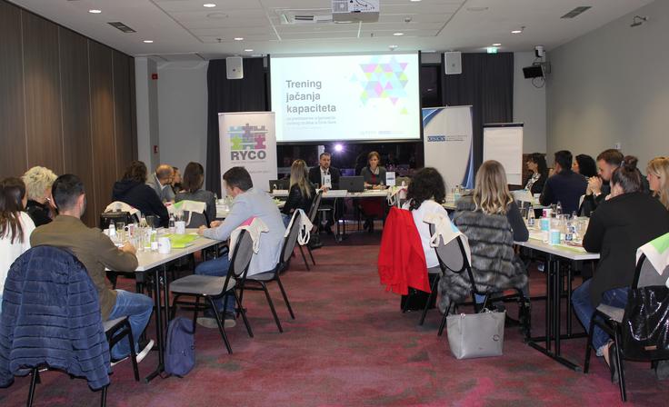 Misija OEBS-a u Crnoj Gori i RYCO Lokalna kancelarija organizovali su trening za potencijalne podnosioce prijava - oko 25 predstavnika organizacija civilnog društva - kako bi razvili svoje kapacitete za prijavljivanje na Otvoreni poziv koji je u toku. Podgorica, 15. novembra 2019. godine.