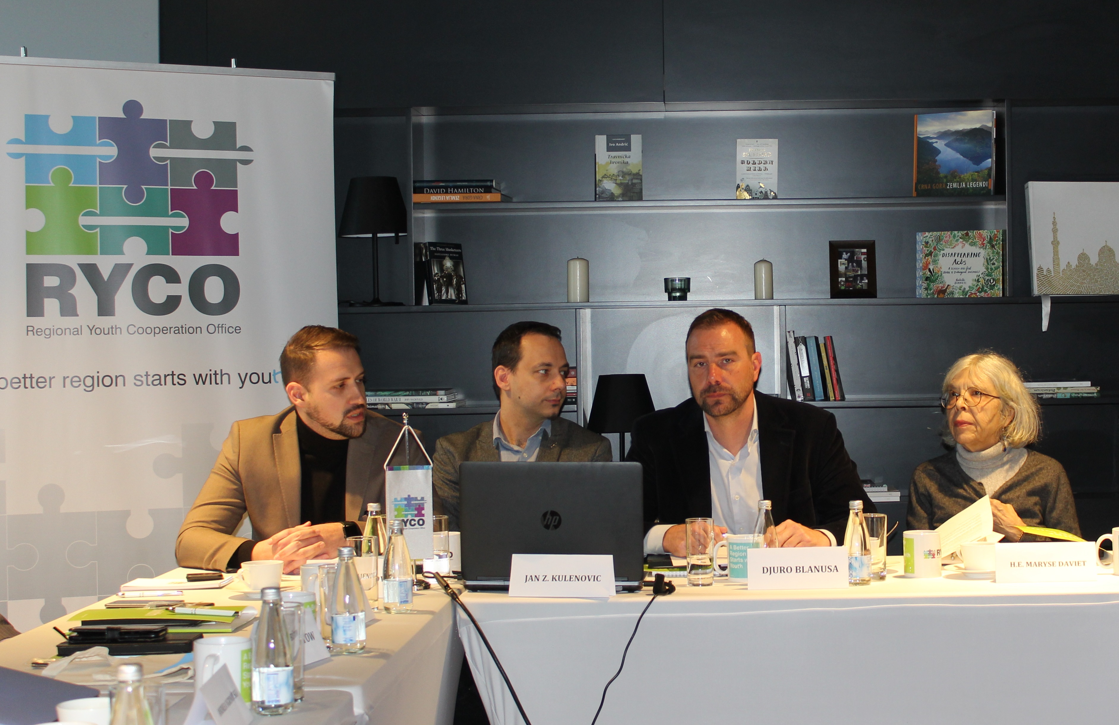 Generalni sekretar Regionalne kancelarije za saradnju mladih (RYCO) Đuro Blanuša (c) i šefica Misije OEBS-a u Crnoj Gori Maryse Daviet otvorili su četvrti sastanak Savjetodavnog odbora RYCO-a, koji je održan u Podgorici, 20. februara 2020. godine.