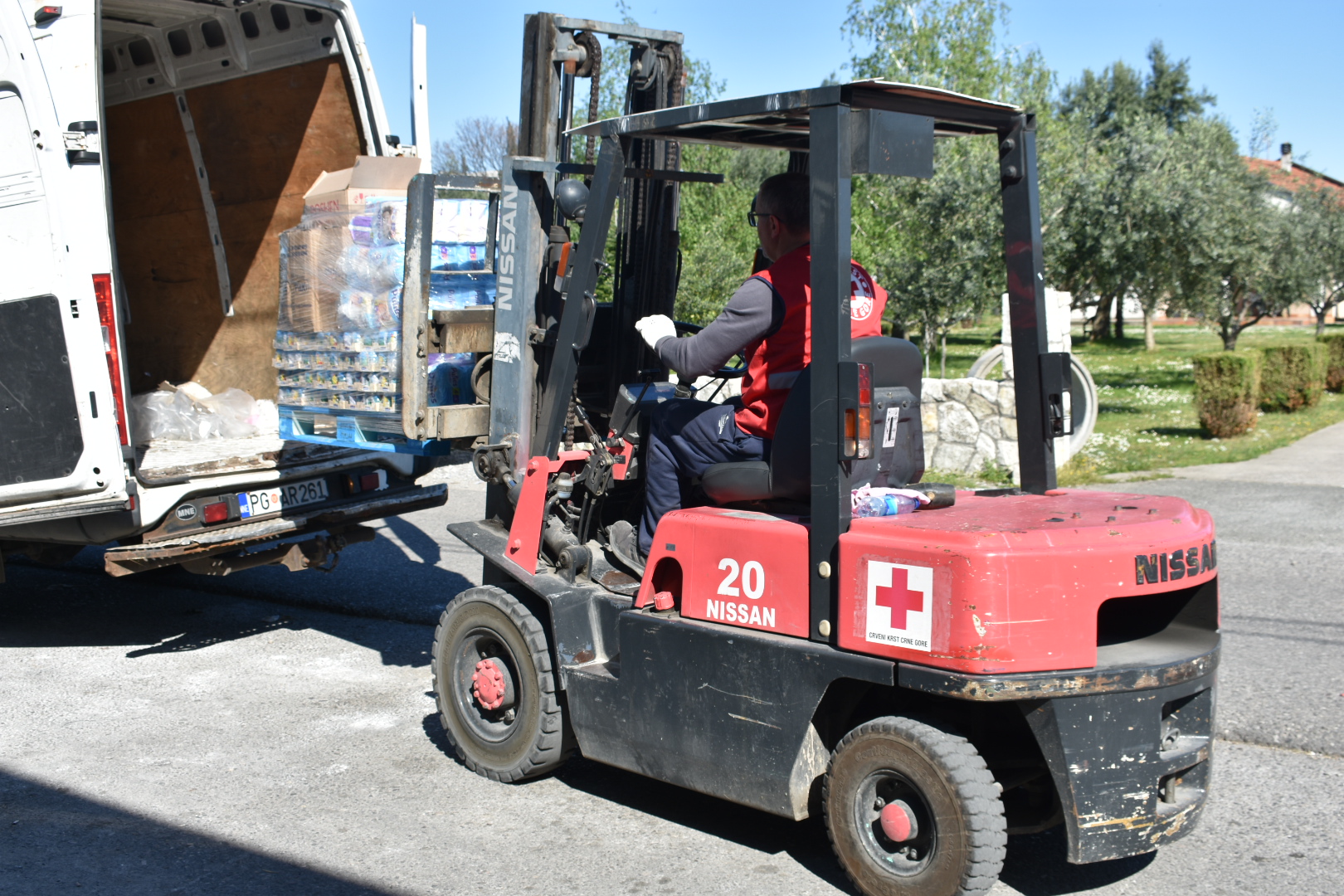 Dio paketa sa hranom i higijenskim potrepštinama za bebe, koje je Misija OEBS-a u Crnoj Gori nabavila i predala Crvenom krstu Crne Gore, a koje će biti podijeljene porodicama u potrebi tokom pandemije COVID-19, Podgorica, 16. april 2020. godine.
