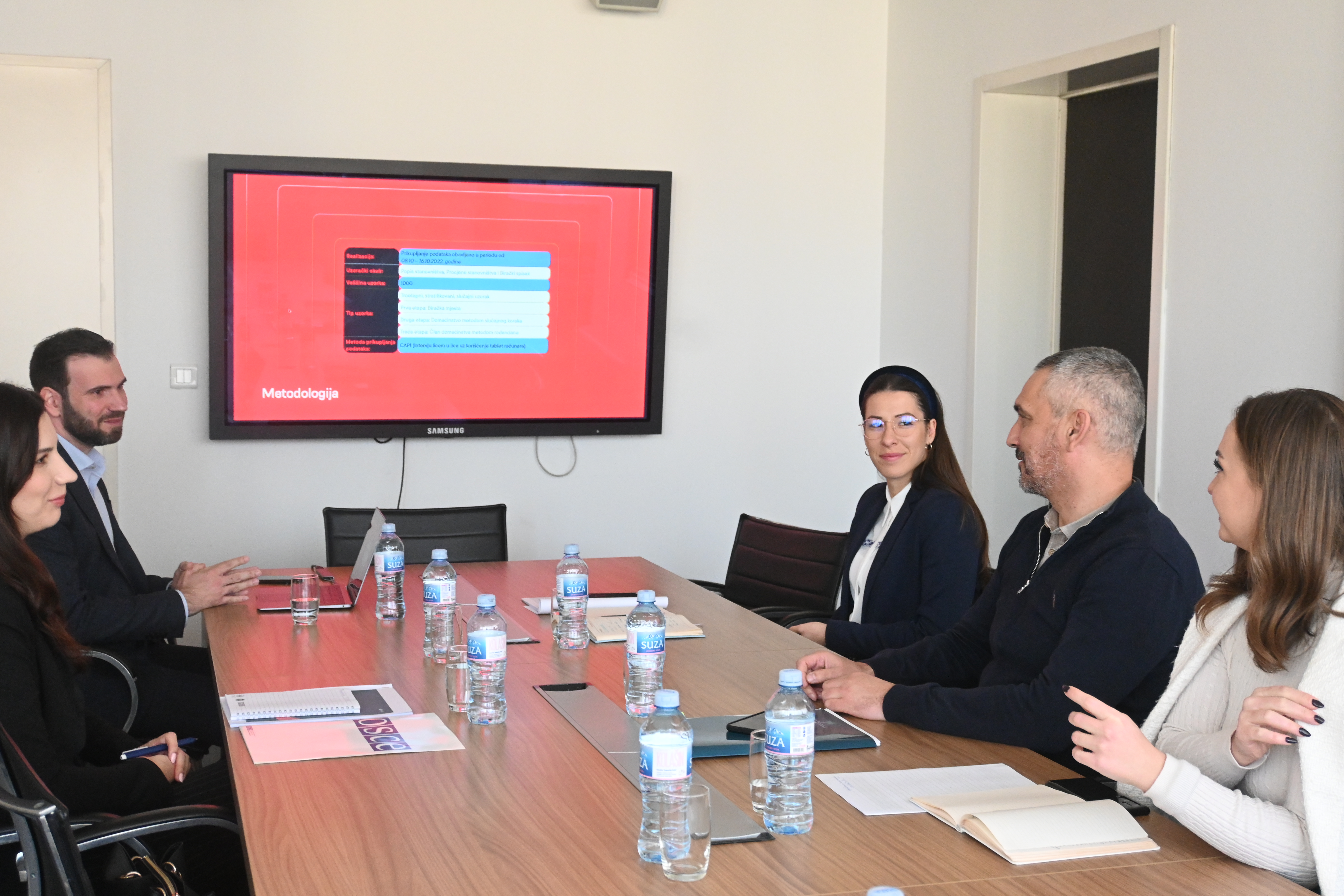 (l) Izvršni direktor agencije Damar Vuk Čađenović predstavlja rezultate istraživanja percepcije policije (d) direktoru Uprave policije Zoranu Brđaninu, koje je podržala Misija OEBS-a u Crnoj Gori, Podgorica, 28. novembar 2022. godine.