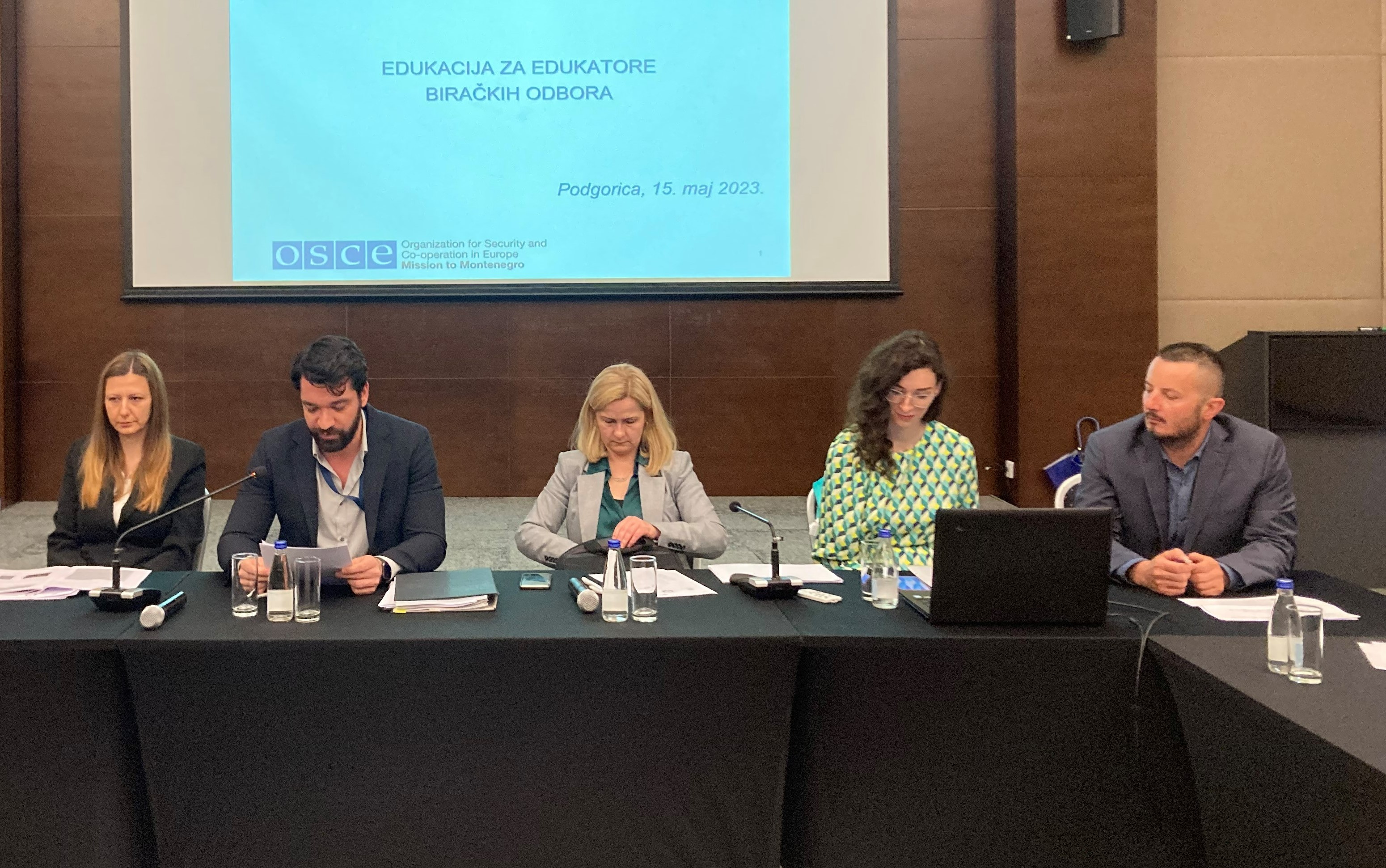 (l) Vršilac dužnosti programskog menadžera za demokratizaciju u Misiji OEBS-a u Crnoj Gori, Darko Brajović, otvara radionicu za opštinske izborne komisije na temu kako da pripreme članove biračkih odbora za predstojeće izbore, Podgorica 15. maj 2023. godine.