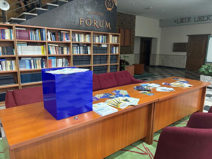 Jedna od glasačkih kutija na Pravnom fakultetu u Podgorici, u okviru simulacije izbora o prioritetima mladih, koje je za crnogorske studente organizovala Misija OEBS-a u Crnoj Gori, 15. novembar 2023. godine.