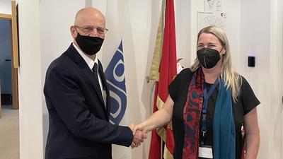 Specijalni izaslanik poljskog predsjedavanja OEBS-om, Ambasador Artur Dmochowski, posjetio je Misiju OEBS-a u Crnoj Gori i sastao se sa zamjenicom šefice Misije Siv-Katrine Leirtroe, 24. januara 2022. godine.