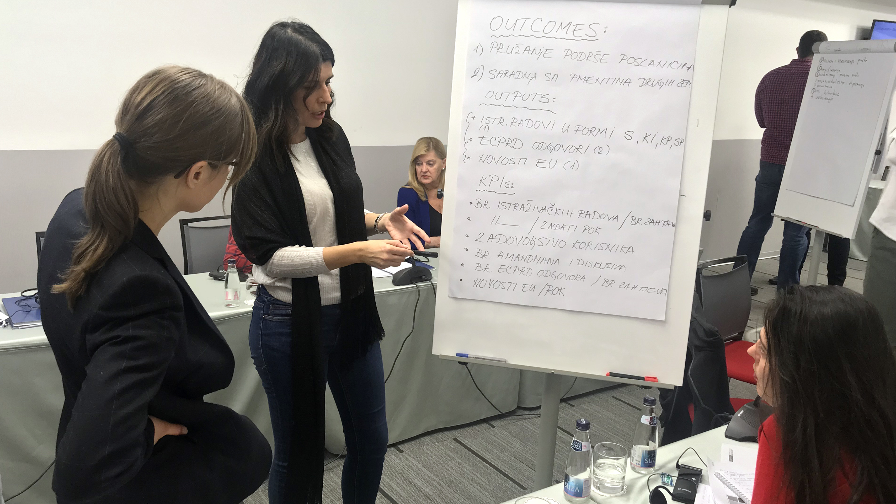 Parliamentary representatives working on defining key performance indicators in a training course organised by the OSCE Mission to Montenegro to improve the capacity of parliamentary services and increase their knowledge of modern performance management systems, Podgorica, 20 November 2018.