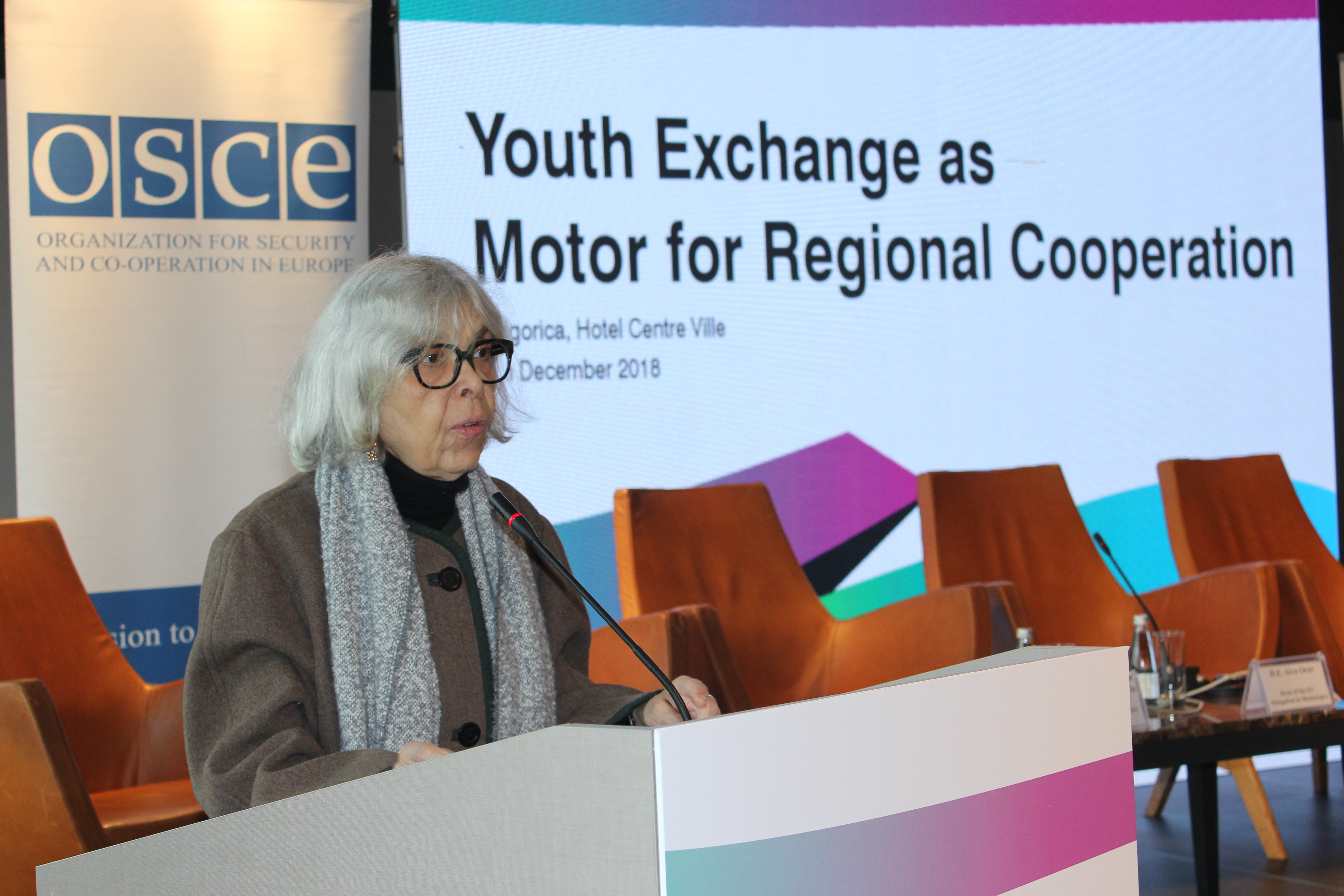 Head of the OSCE Mission to Montenegro Maryse Daviet speaking at the RYCO conference "Youth Exchange as Motor of Regional Co-operation" in Podgorica, Montenegro, 14 December 2018.