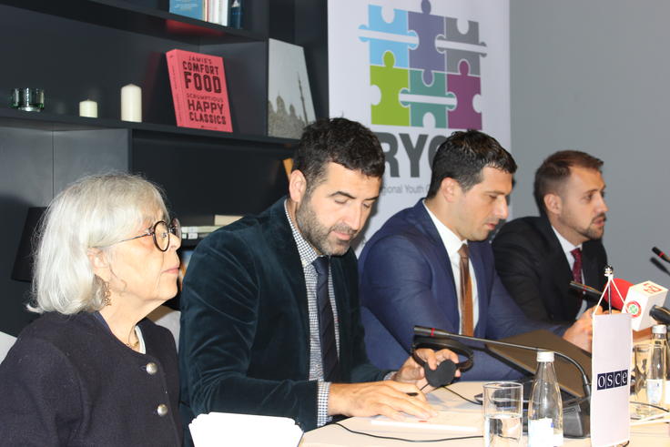 (l-r) Maryse Daviet, Head of OSCE Mission to Montenegro, Fatos Mustafa, RYCO Deputy Secretary General, Nikola Janović, Minister of Sports and Youth and Edin Koljenović, Head of the RYCO Local Branch Office in Montenegro opened a regional meeting on establishing registration procedures for local branch offices of the RYCO,Podgorica, 14 October 2019.