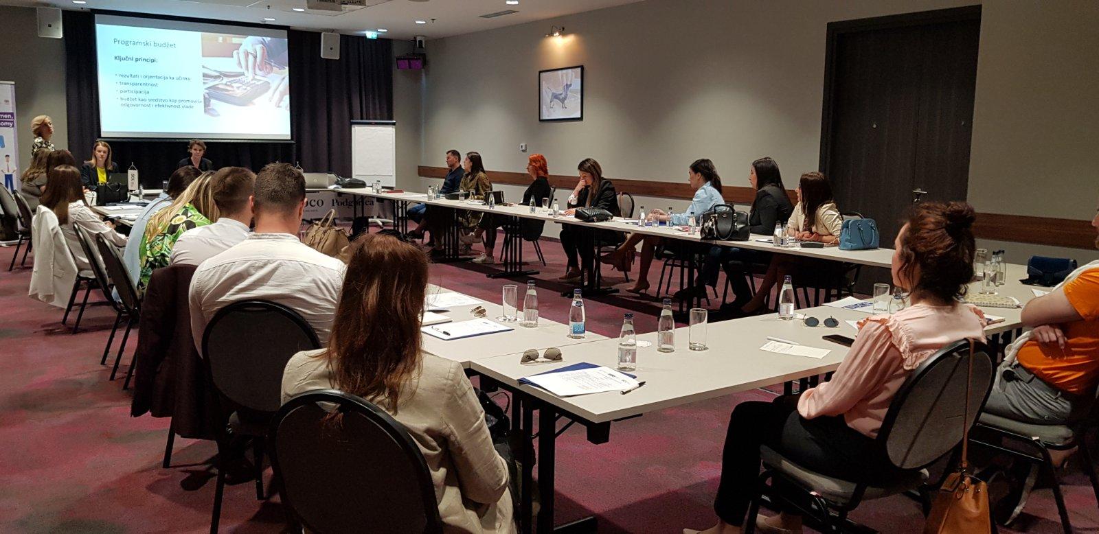 Representatives of six ministries in the Government of Montenegro discuss gender-responsive budget analysis on the workshop organized by the OSCE Mission to Montenegro, in co-operation with the Secretariat to the Competitiveness Council of Montenegro and the Ministry of Finance, Podgorica, 11 May 2022.
