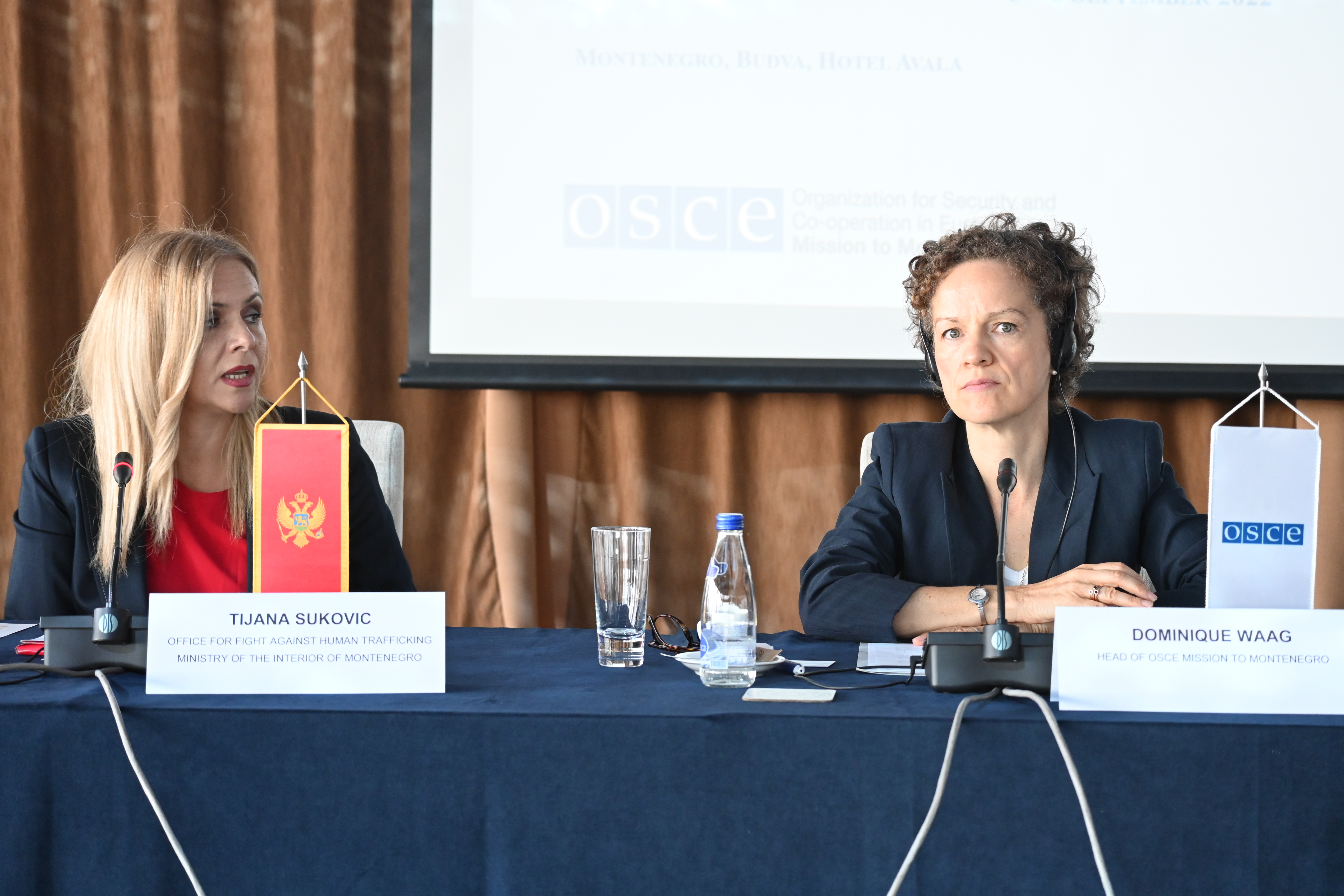 (l-r) Tijana Šuković, Head of the Department for Combating Human Trafficking in the Montenegrin Ministry of Interior, and Dominique Waag, Head of the OSCE Mission to Montenegro, opening the regional conference “Countering online Child Exploitation in Southeast Europe”, organized by the OSCE Mission to Montenegro in Budva, 5 September 2022.