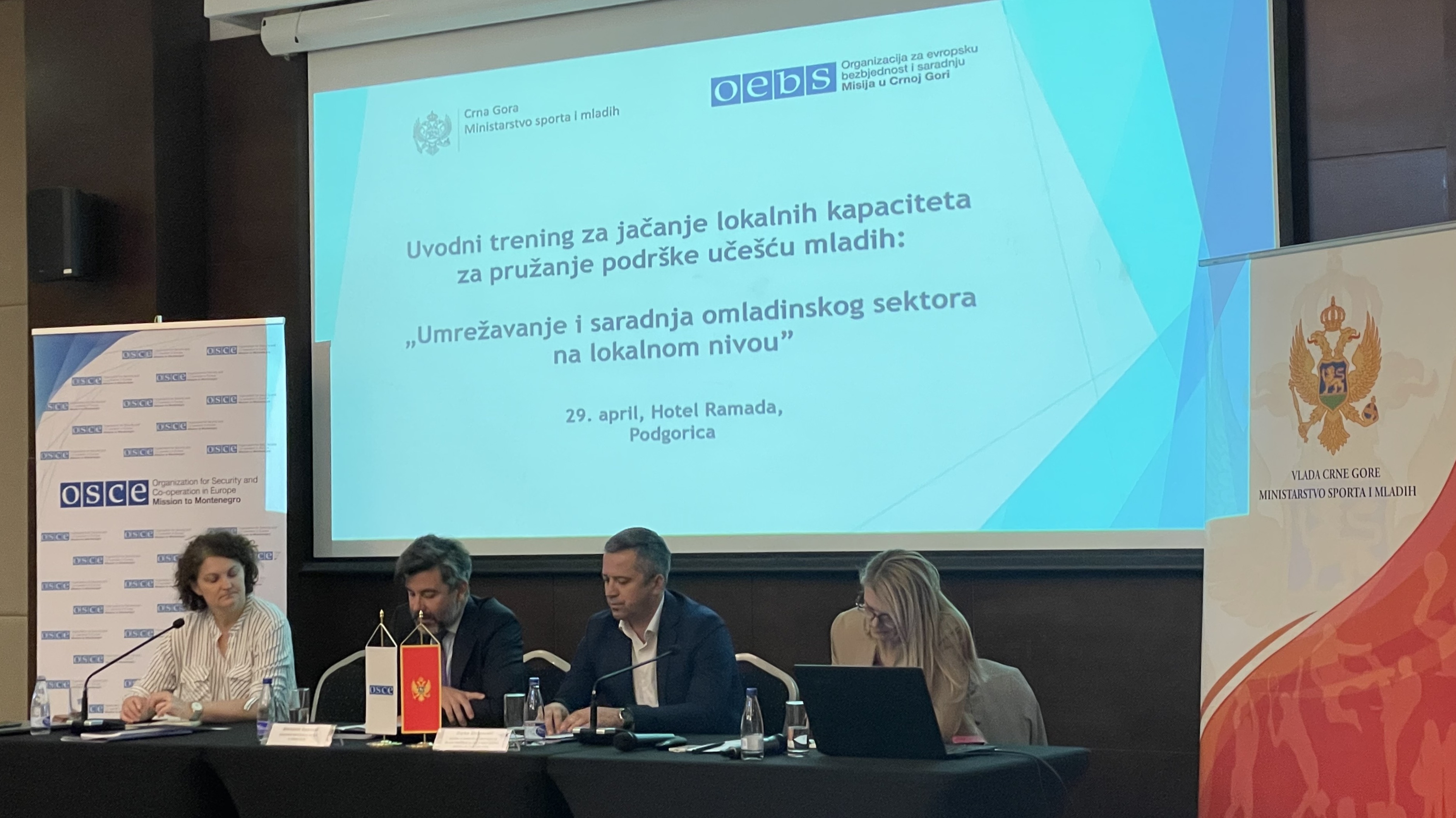 Center left to right: Deputy Head of the OSCE Mission to Montenegro Giovanni Gabassi, Director of the Directorate for Youth and Cooperation with NGOs at the Ministry of Sports and Youth Darko Stojanović, Podgorica, 29 April, 2025.