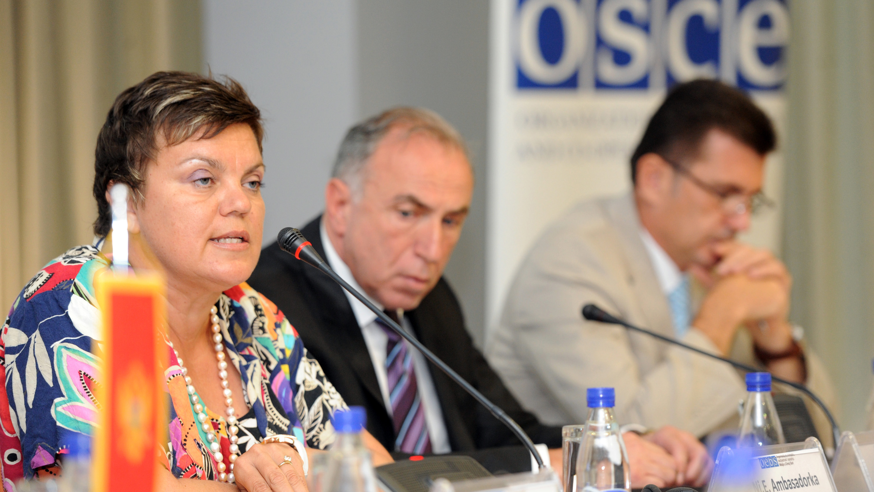 Ambassador Janina Hrebickova, the Head of the OSCE Mission to Montenegro, at the opening of a seminar for journalists on the rule of law and law enforcement institutions, Podgorica, 28 July 2015.