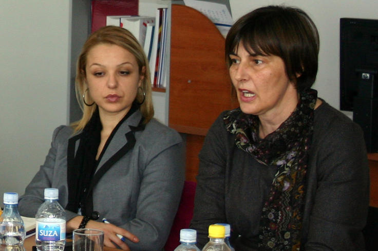 Assistant Minister of Justice, Branka Lakocevic (r) and Director of the Judicial Training Centre, Maja Milosevic (l) at a meeting on judicial reform with NGO representatives, Podgorica, 11 February 2011.