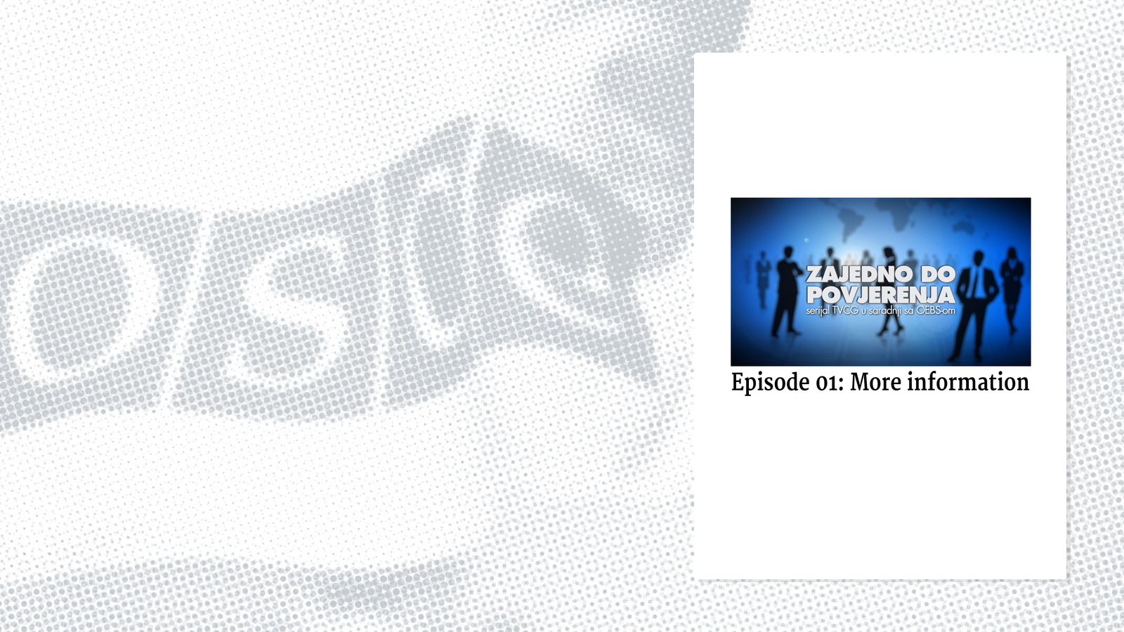 The OSCE Mission to Montenegro, in co-operation with the Public Broadcaster RTCG, launched series of TV talk shows to open public dialogue among all segments of society on responsibilities of institutions, media, civil society and participation of citizens in societal issues. The programme will consist of 20 TV shows, with participation of eminent national and international experts from the judiciary, the media, civil society, academia and international organizations, who will share best practices, in trying to find a balance between ensuring media freedoms and protection of human rights and freedoms. The viewers will also be able to participate in the programme via social networks - Twitter and Facebook. The talk show is aired in Montenegrin only. Access the talk shows online.